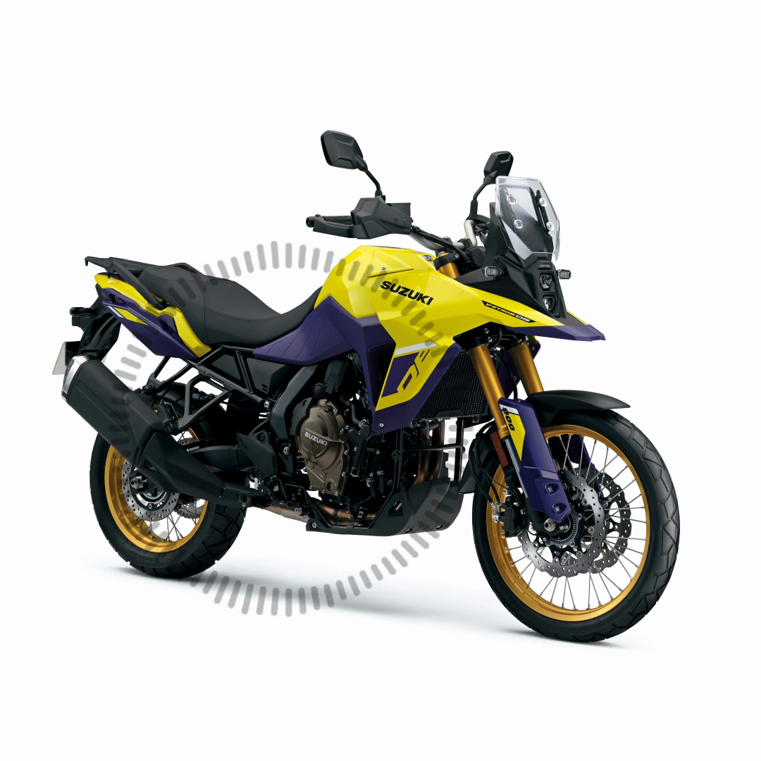 Die V-Strom 800DE bleibt dem V-Strom-Erbe und der Suzuki- Philosophie treu. Sein Design stellt die neueste Entwicklung in Form eines „Schnabels“ dar, der seit 1988 das Markenzeichen der Serie und des DR-Z 800 ist. Daher erscheint er in der Serie in diesem neuen DE-Finish, also am meisten abenteuerliche Version, DE bedeutet ursprünglich Dual Explorer
